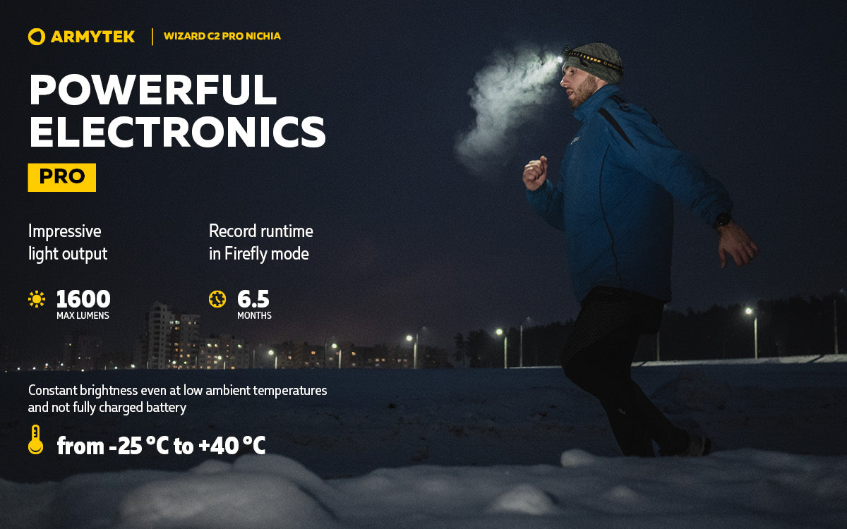 - Pro Powerful electronics provides impressive light output of 1600 lumens and record 6.5 months in Firefly mode. Constant brightness even at low ambient temperatures and not fully charged battery.