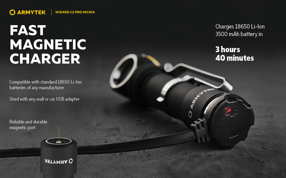 New magnetic charger: the flashlight charges 2 times faster (3 h 40 min).