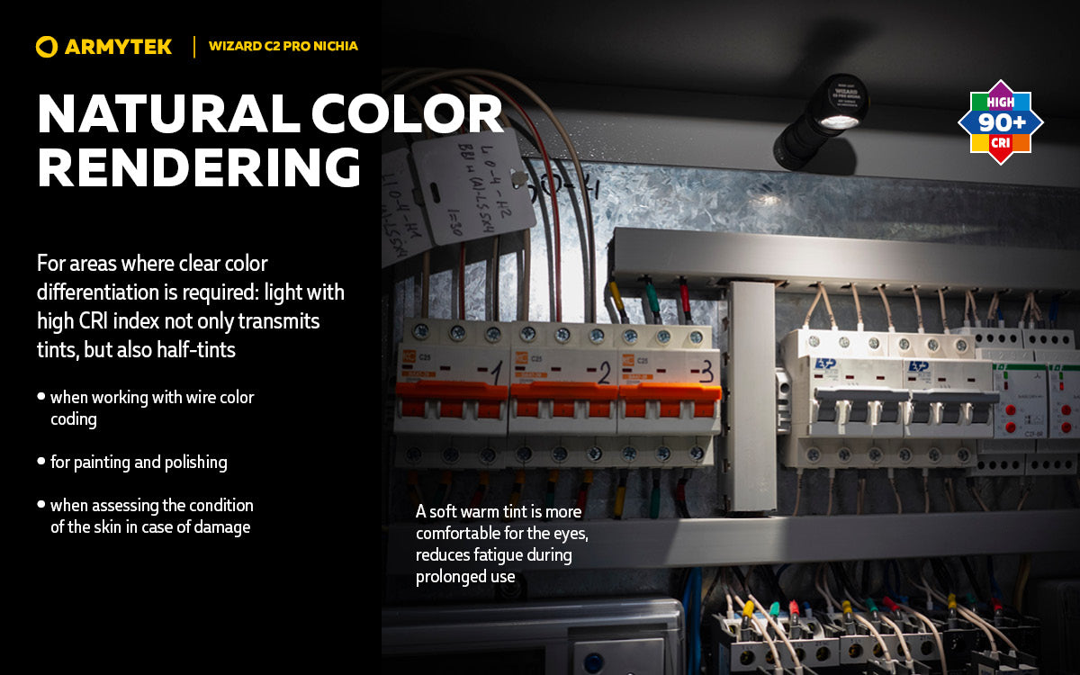 The version of Wizard C2 Pro with Nichia LED is designed specifically for use in the areas where clear color differentiation is required: for photo and video shooting, painting and polishing, working with wire color coding.
