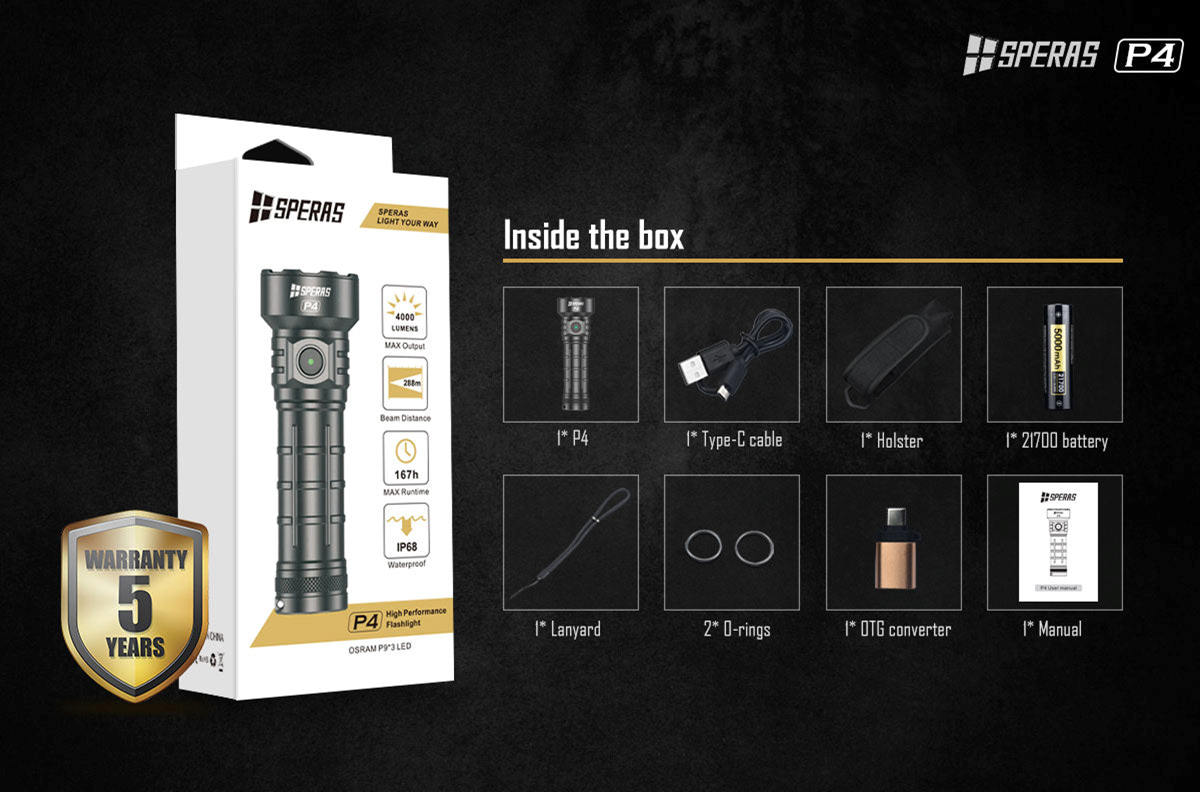 Speras P4 4000 Lumens USB-C Charging Flashlight