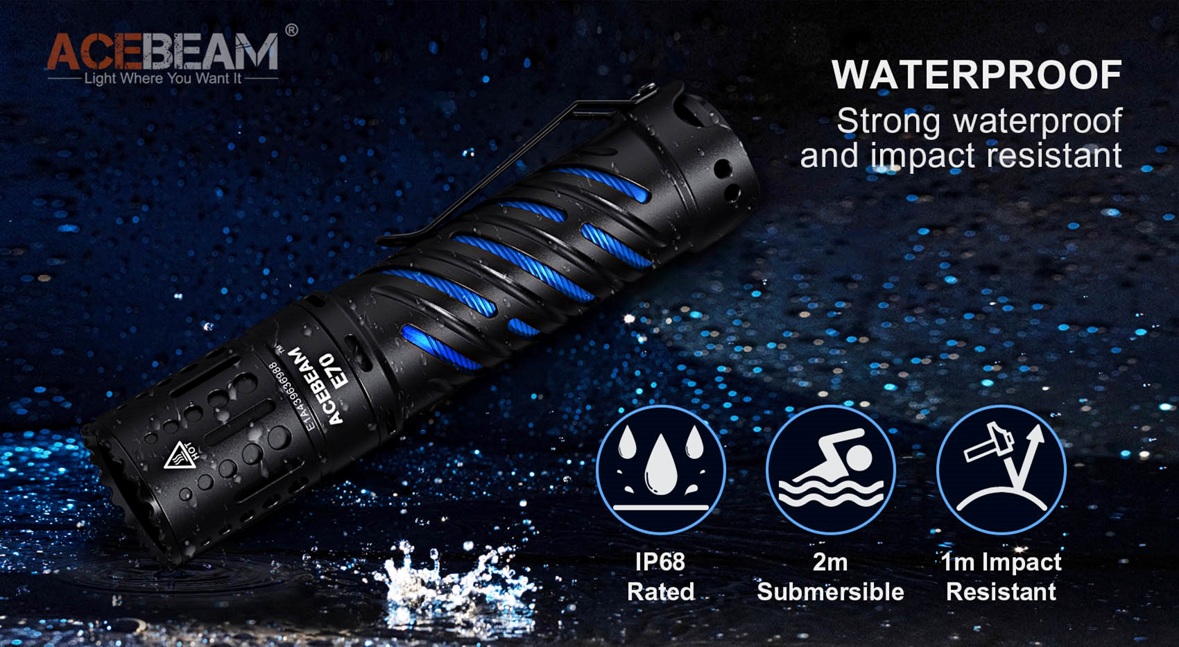 - IP68 waterproof (2 meters submersible)