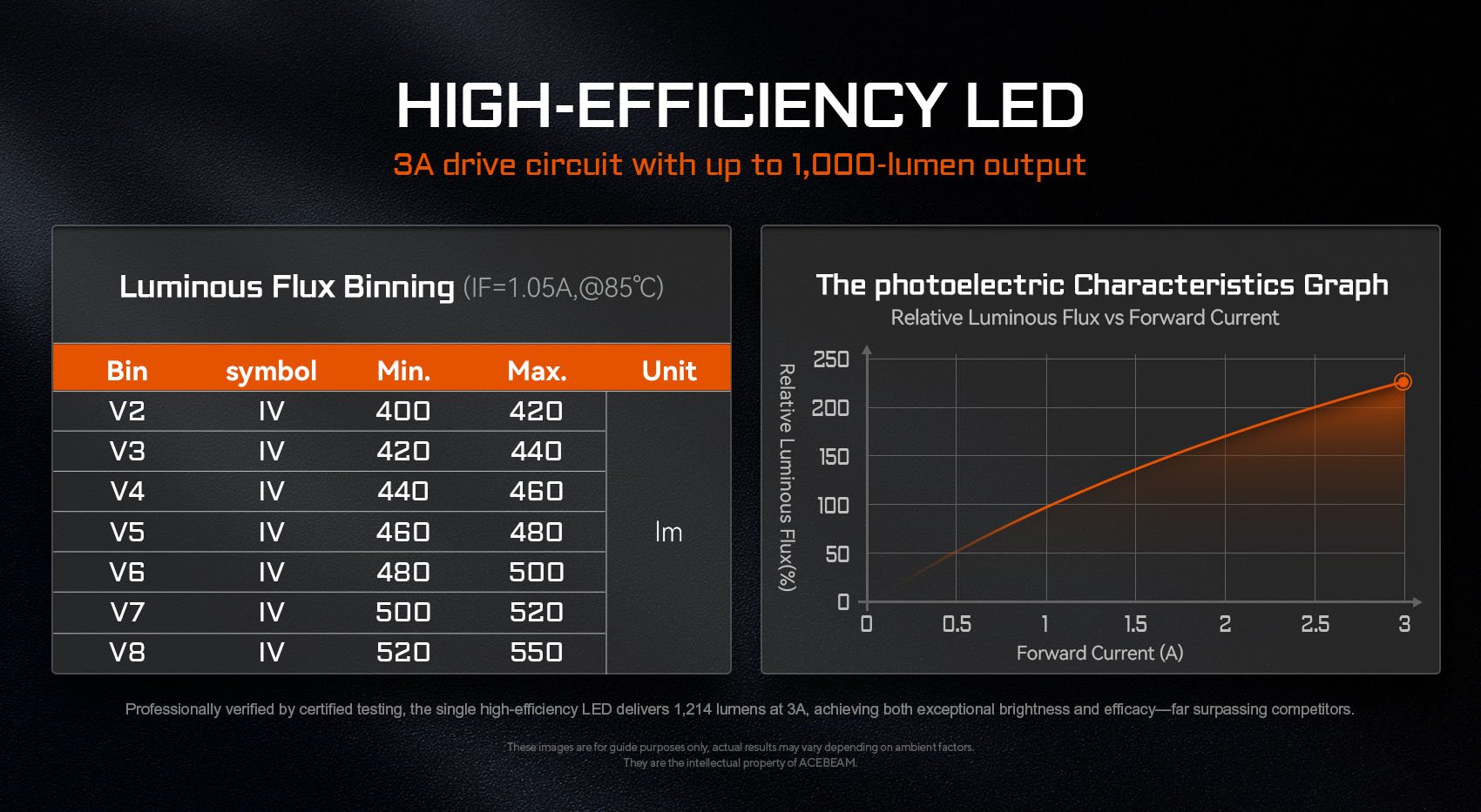 - Med1: 200 lumens; 1024cd; 64 meters; 16 hours