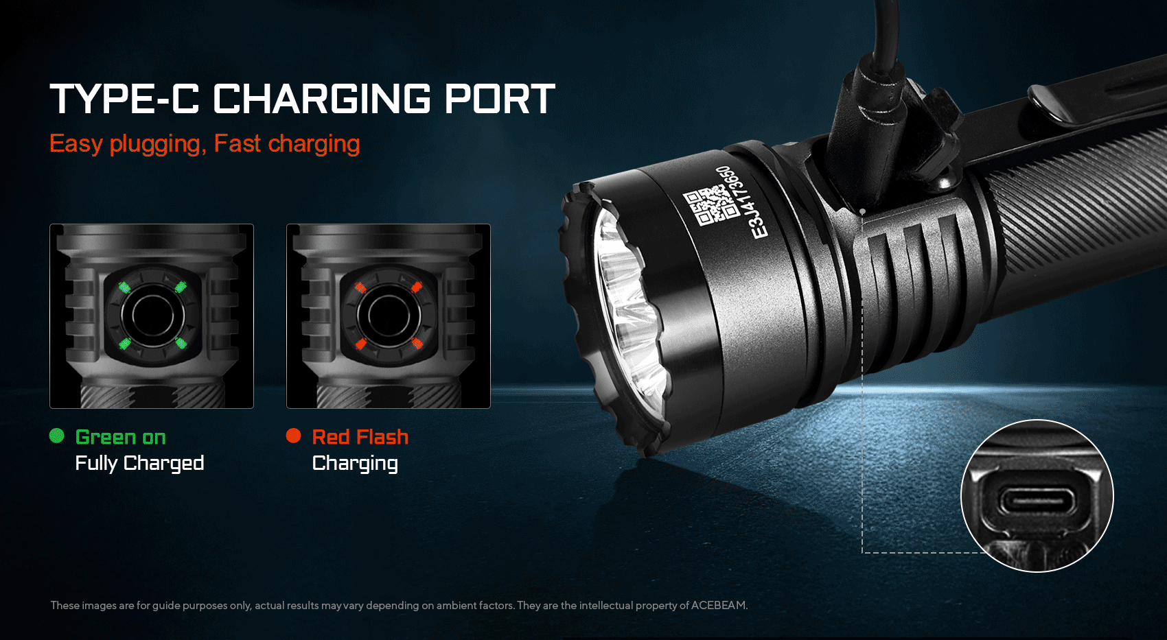 - Included: 1 x ACEBEAM 21700 USB-C rechargeable battery