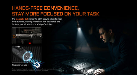 - The magnetic tail cap can attach to most metal surfaces, freeing both hands for tasks
