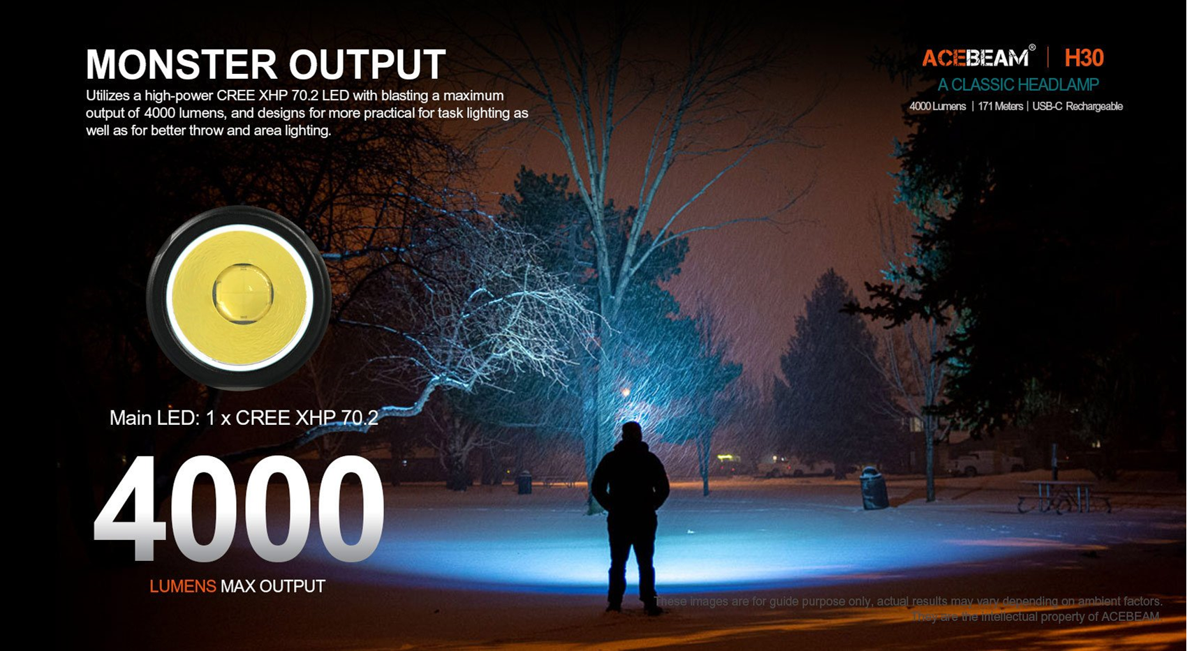 Max 4000 lumens powered by included 1x 21700 battery (IMR21700NP-510A)