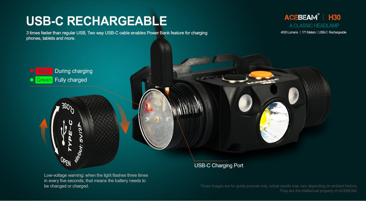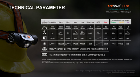 Acebeam H30 Headlamp Neutral White 5000K +Two Auxiliary Red + Green 4000 Lumens