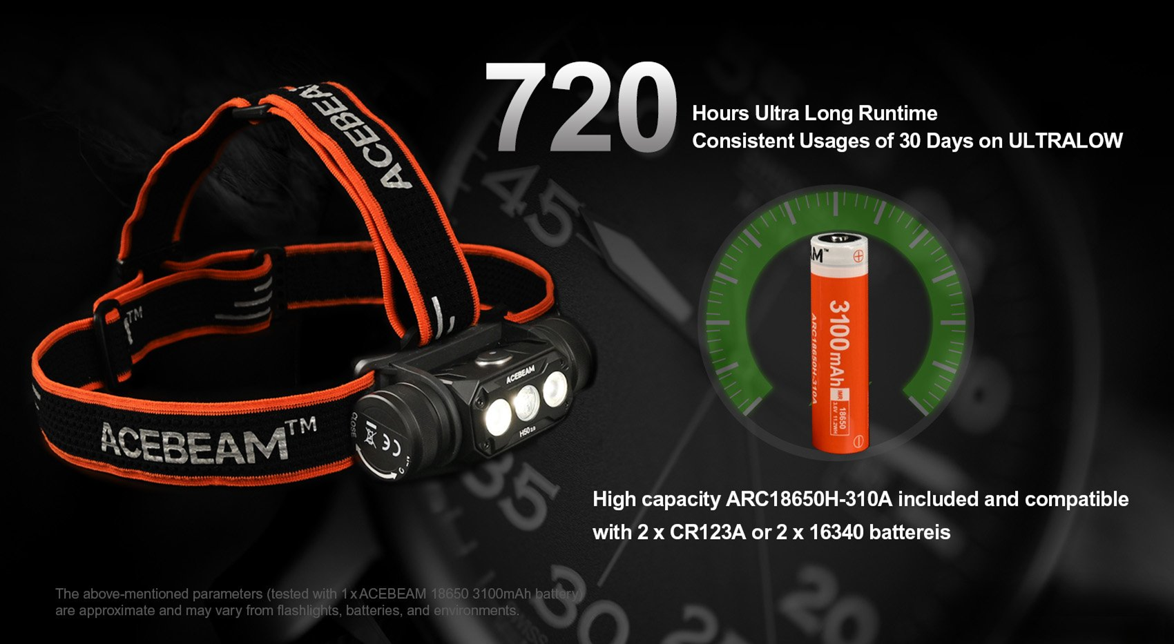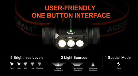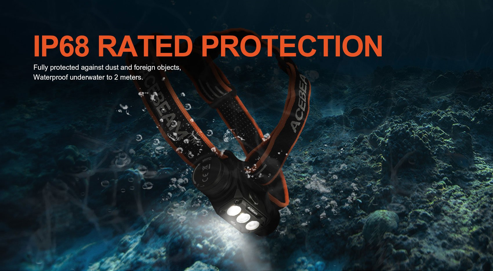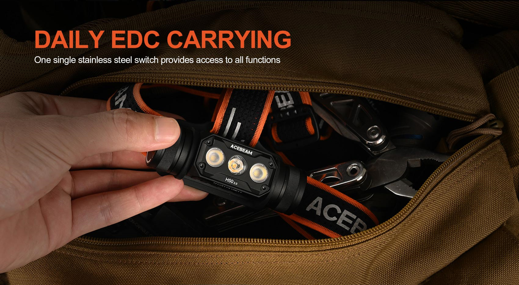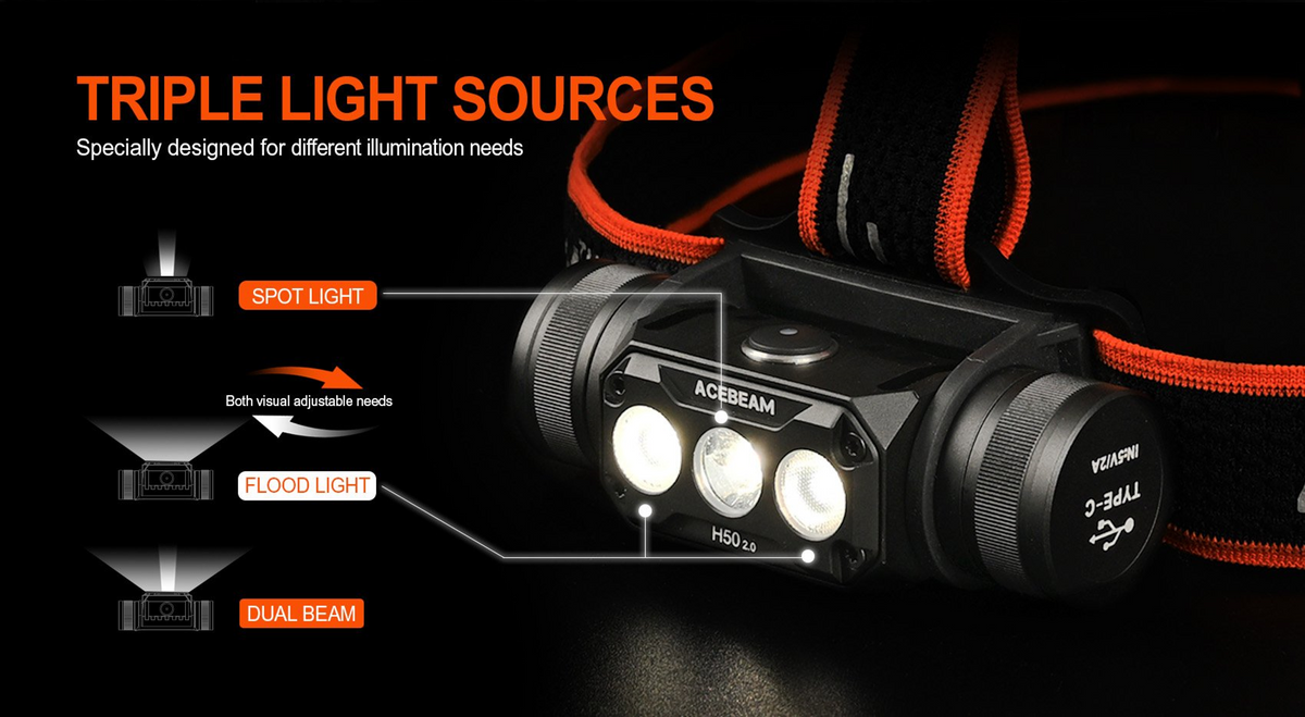 The AceBeam H50 2.0 is a high performance headlamp that Combines Spot-and Floodlight or dual beam with a max output of 2,000 lumens. 141 meters long range coverage and 170° wide range flood light specially designed for industrial maintenance, caving rescuing, climbing and mountaineering. Also, the H50 2.0 headlamp is the first choice by hiking experts for expeditions.