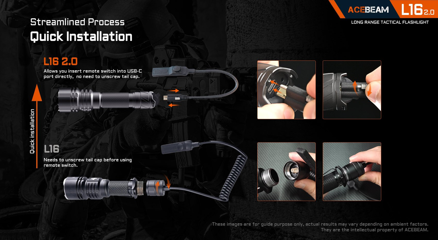 • Quick installation, allows you insert remote switch into USB-C port directly, no need to unscrew the tail cap