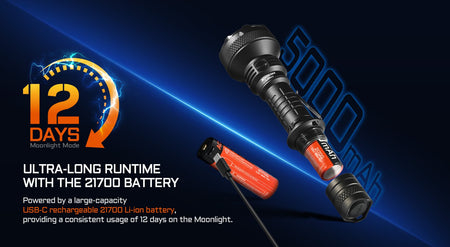 - Up to 12 days of runtime on moonlight mode - great for overnight trips or long work days