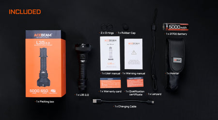 - Included: One ACEBEAM 21700 5000mAh battery