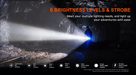 • 6 Brightness Levels and Strobe to meet your multiple lighting needs