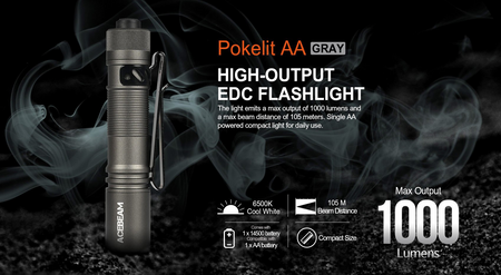 Acebeam Pokelit AA EDC Flashlight (Gray) 1000 Lumens
