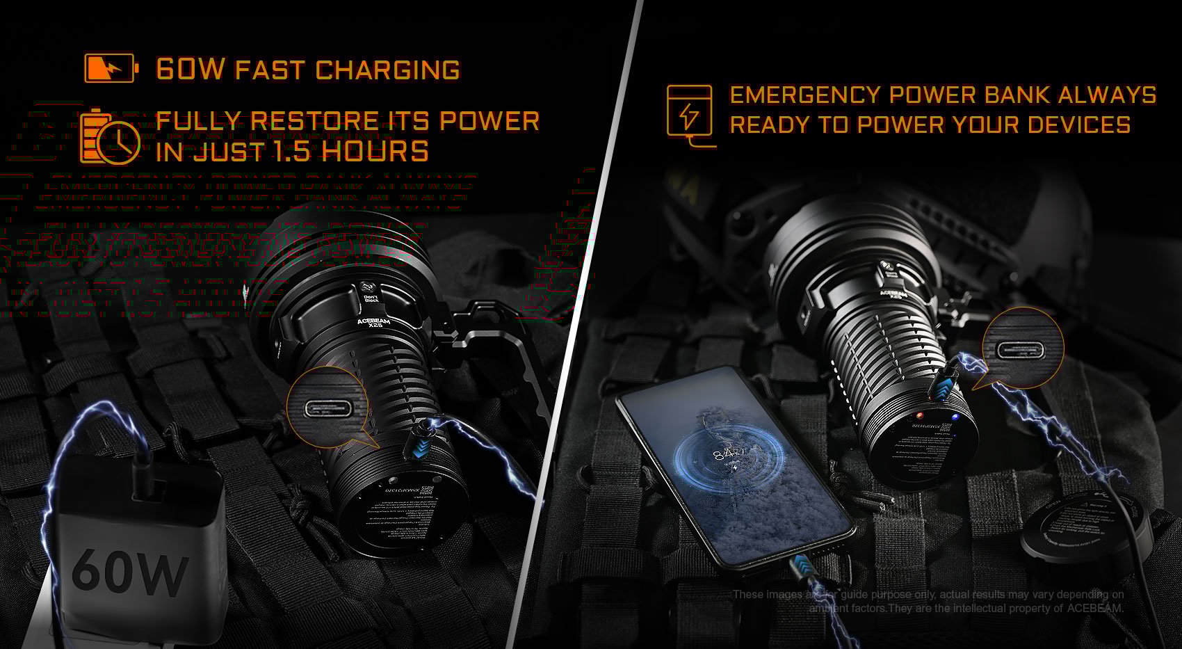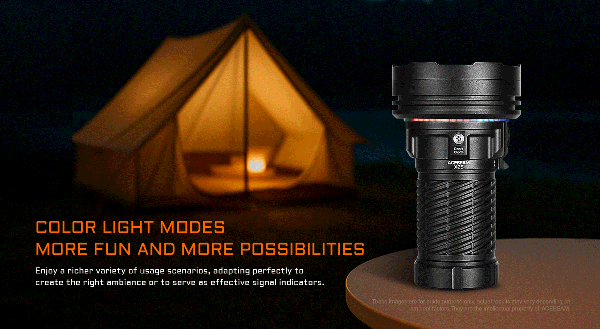 •Built to withstand the toughest conditions, the ACEBEAM X25 boasts a rugged IP68 waterproof and dustproof rating, making it your reliable companion in any environment.