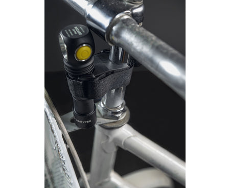 The Armytek ABM-01 mount is designed for reliable flashlight fixation on a bicycle handlebar. It holds the flashlight as tight as possible, which allows it to stay in place even during shaking.