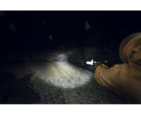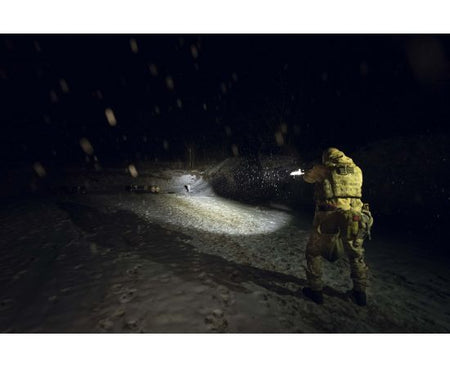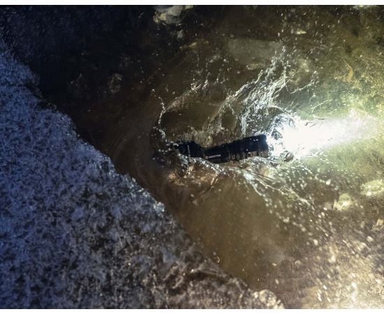 White light with an impressive for the given dimensions brightness of 1500 lumens and beam distance of 350 meters allows to effectively perform standard tasks in low visibility conditions.