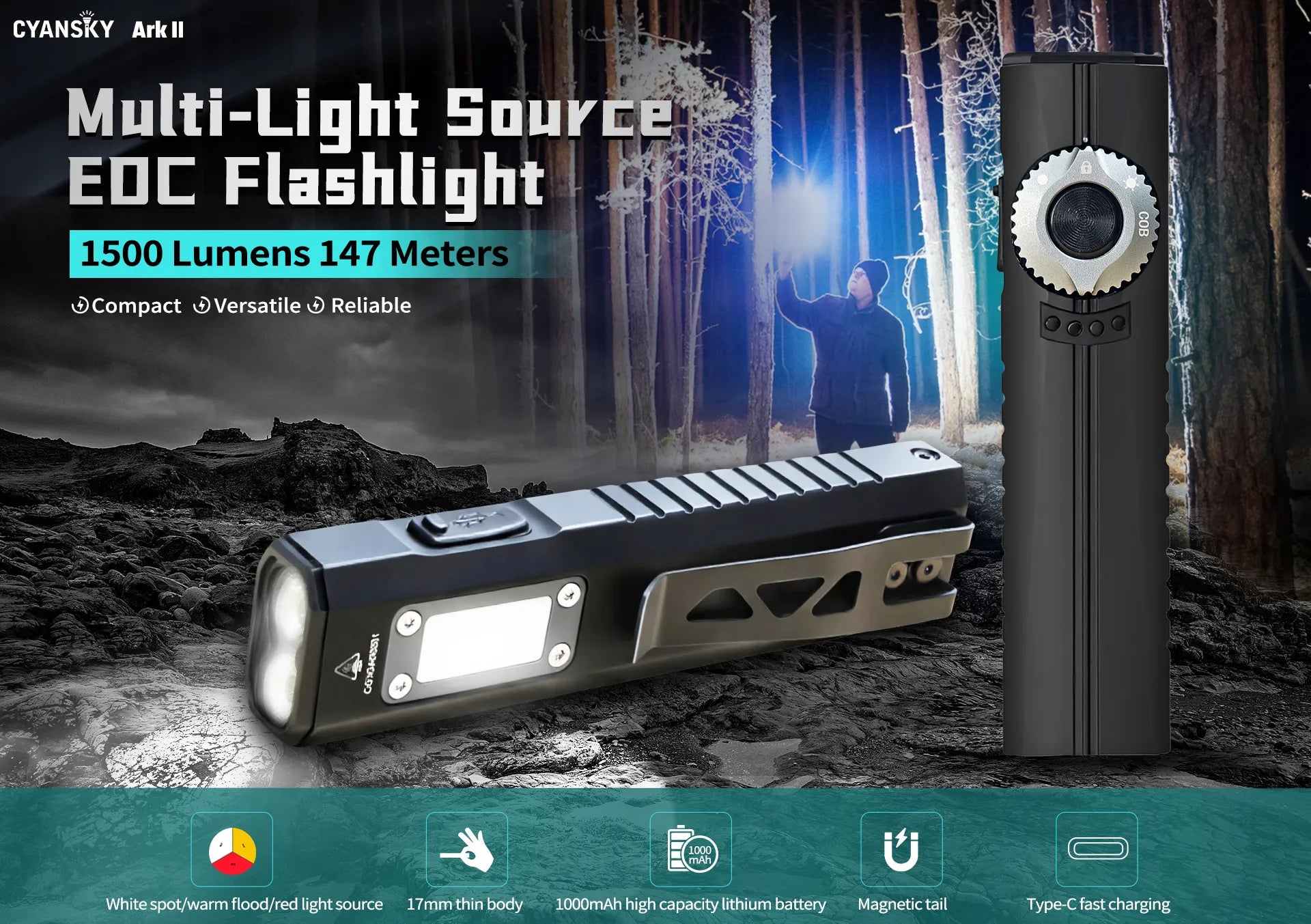 Cyansky ARK II Multi-Light Source EDC Flashlight 1500 Lumens