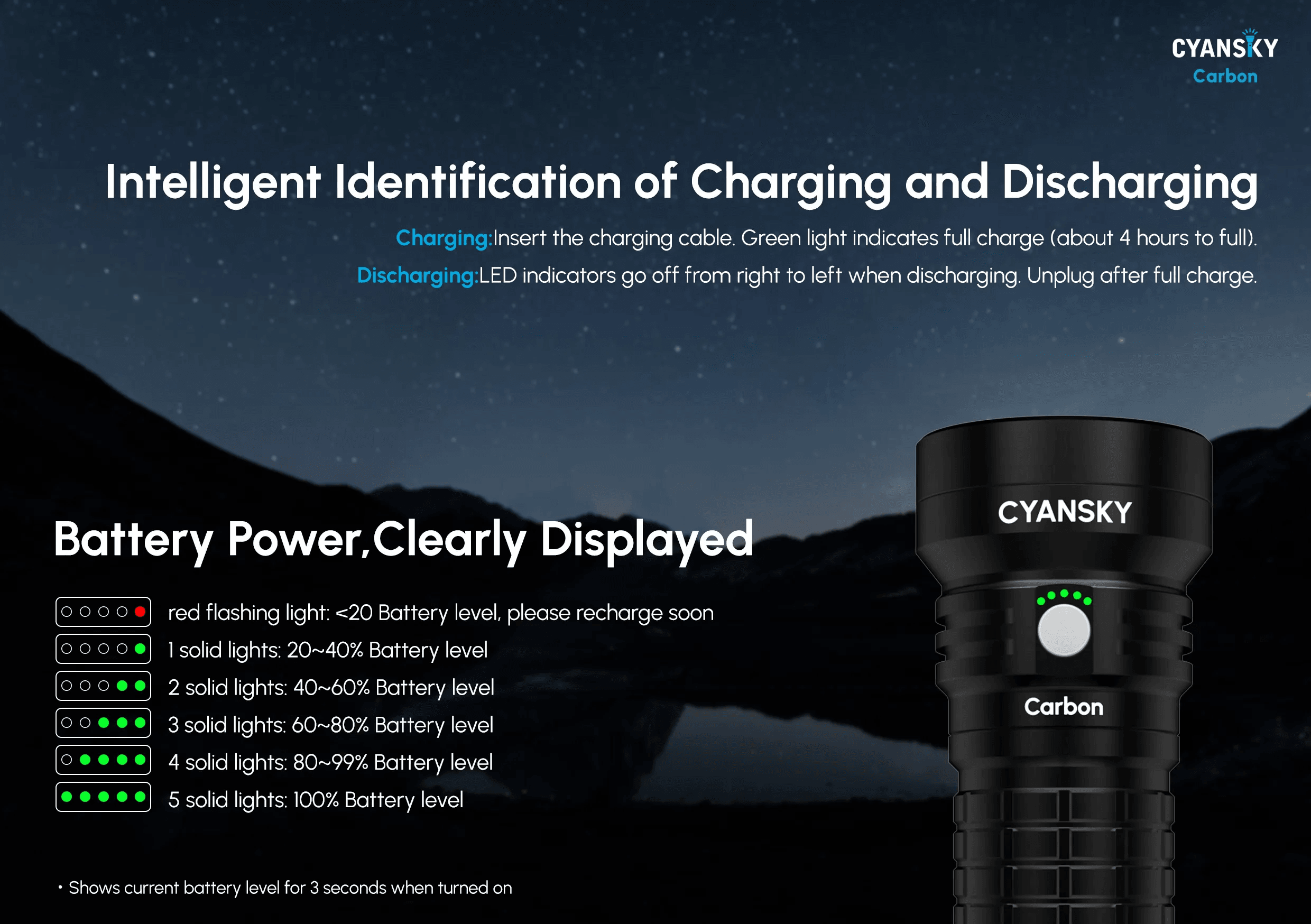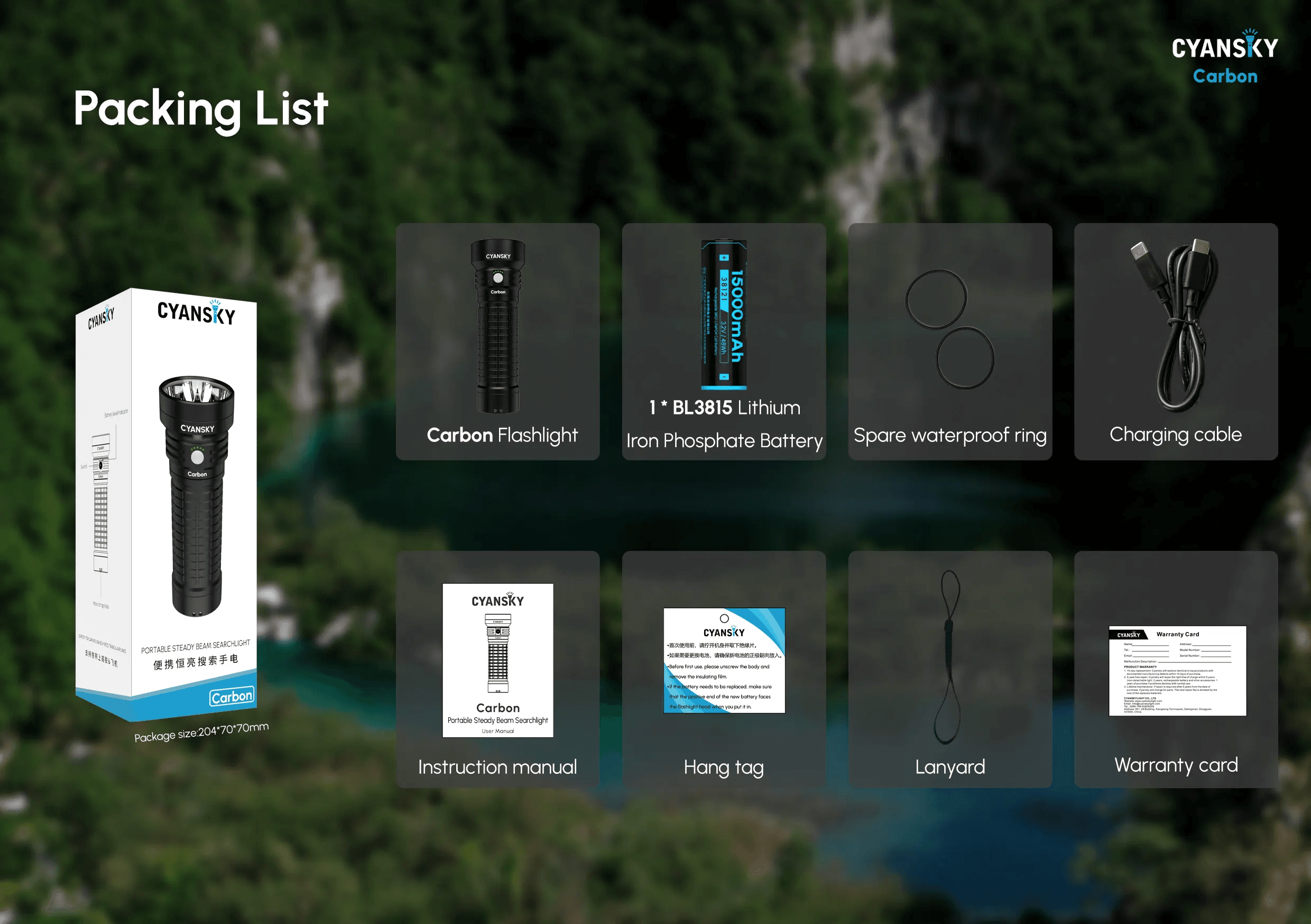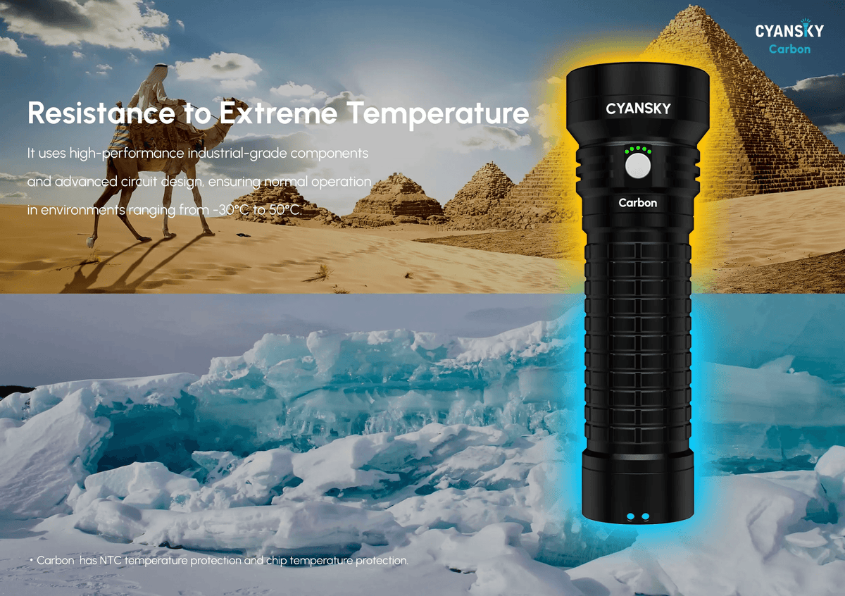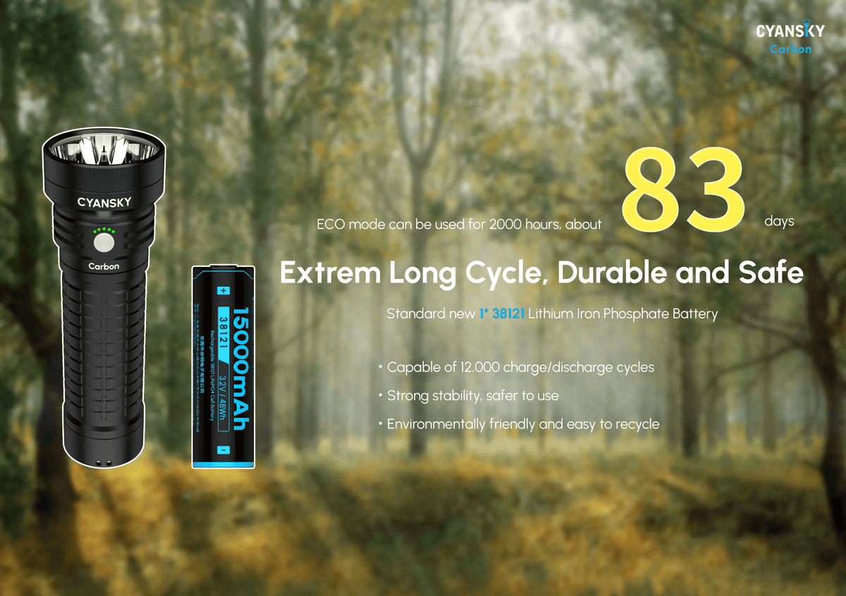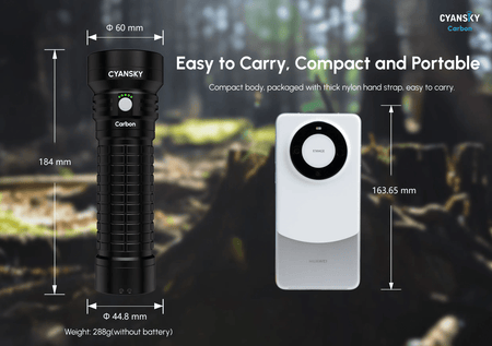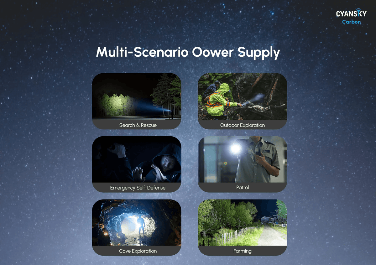 The Cyansky Carbon Portable Steady Beam Searchlight is an ideal choice for search missions, outdoor expeditions, and emergency situations, providing reliable, long-lasting, high-intensity illumination.