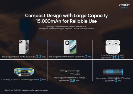 • Integrated Power Bank: Doubles as a 15,000mAh power bank, allowing you to charge devices during outdoor adventures.