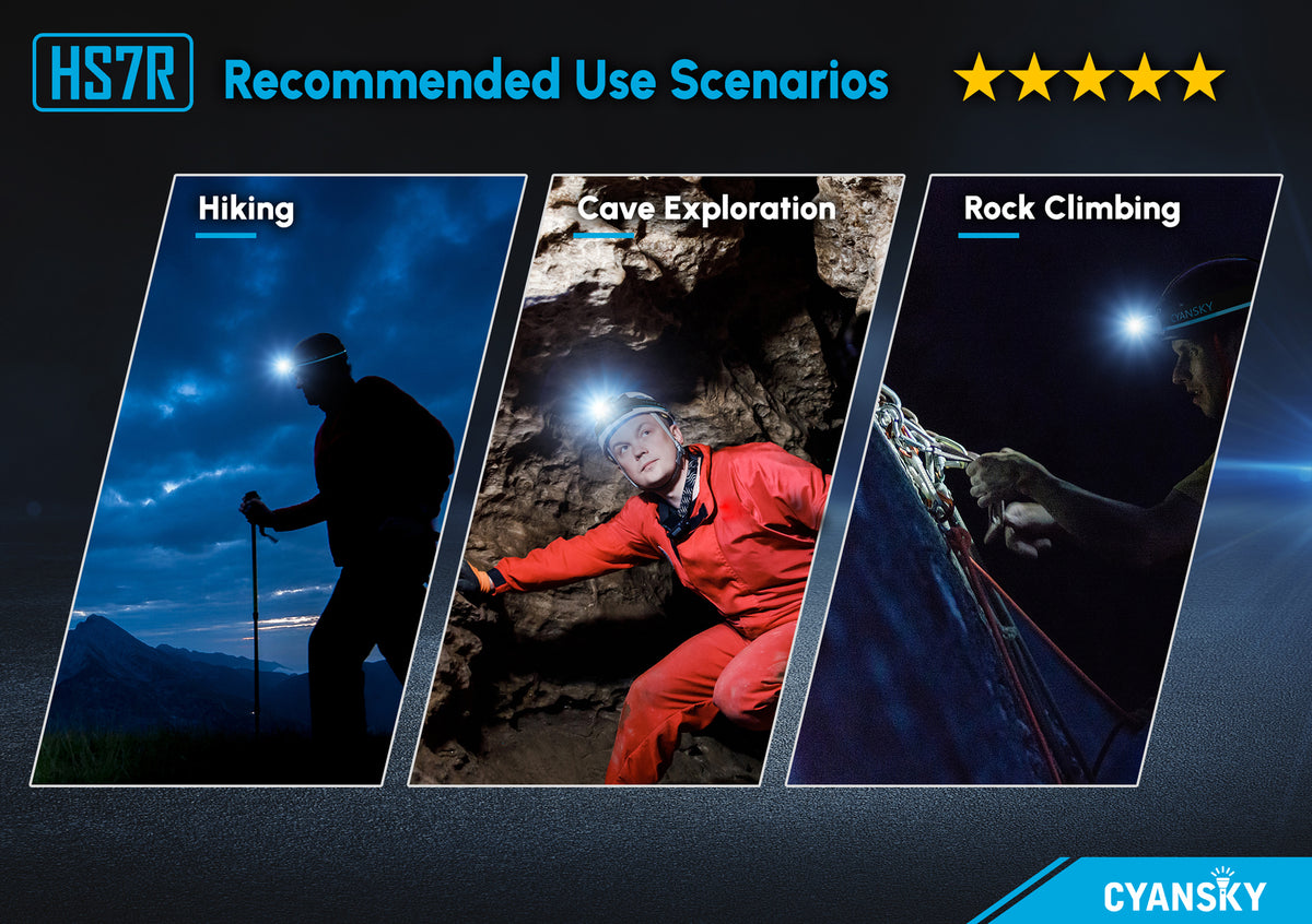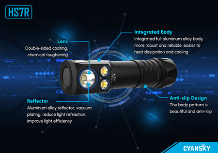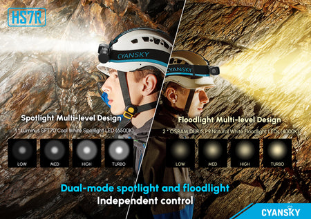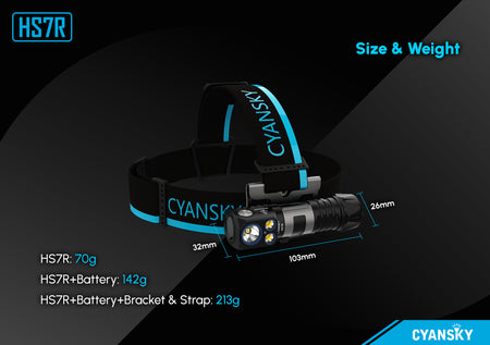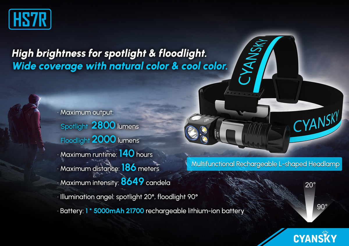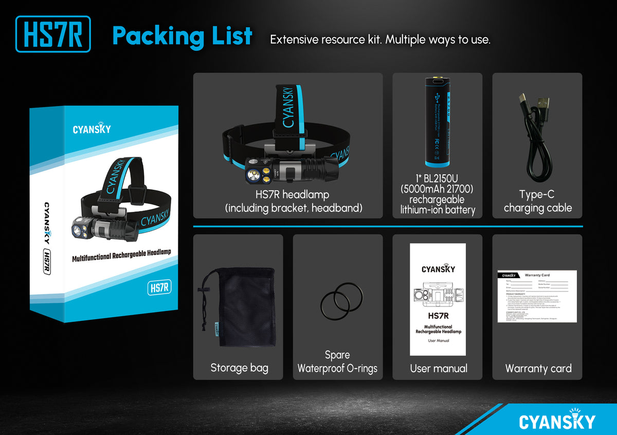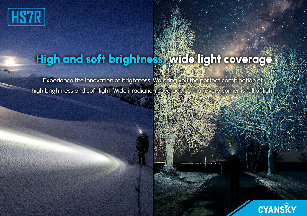 The HS7R headlamp is a rechargeable high-performance headlamp with various practical functions powered by a 21700 lithium battery. The HS7R has high-quality LED lights and provides spotlight and floodlight modes. The spotlight mode can output up to 2800 lumens, and the floodlight mode can output up to 2000 lumens. With multiple modes, you can easily switch to adapt to different scenarios. The multiple color temperature options also provide a comfortable, natural, and precise light source, making it suitable for outdoor adventures and industrial operations, providing you with an excellent visual experience. The HS7R headlamp has robust performance. It comes with a detachable stainless-steel bracket and a widened headband, which can be easily worn and removed, and held comfortably in hand. The headlamp has an IP68 waterproof and dustproof rating and has passed a 2-meter drop test. Regarding safety, the HS7R headlamp integrates intelligent temperature control and light sensing adjustment to ensure a worry-free lighting experience during use. With practicality and innovative design, the HS7R multifunctional rechargeable headlamp will add brilliance to any adventure or task.