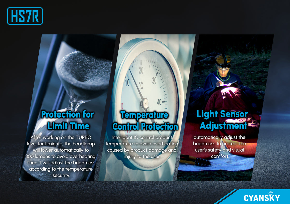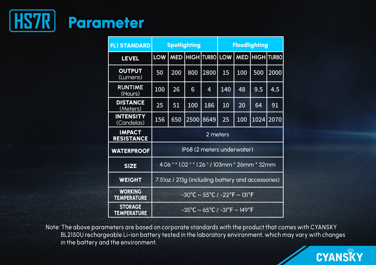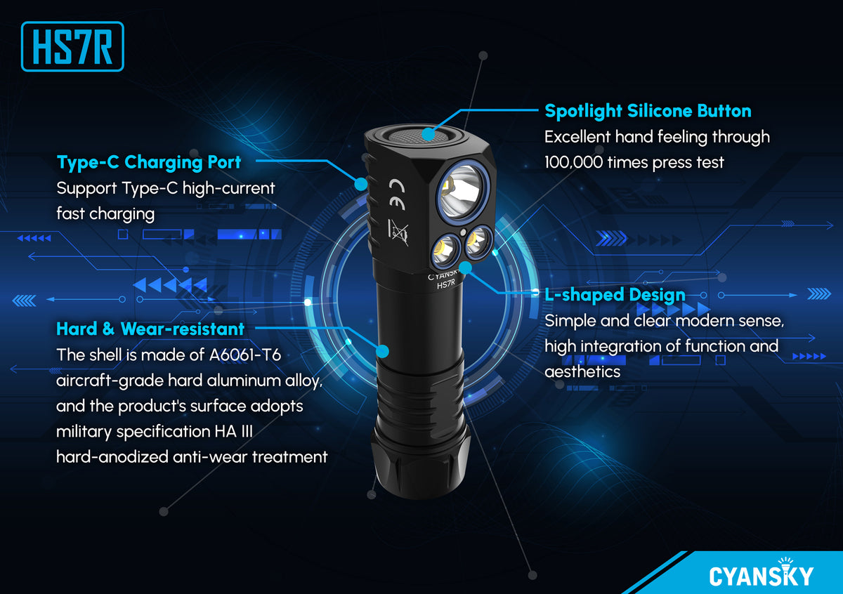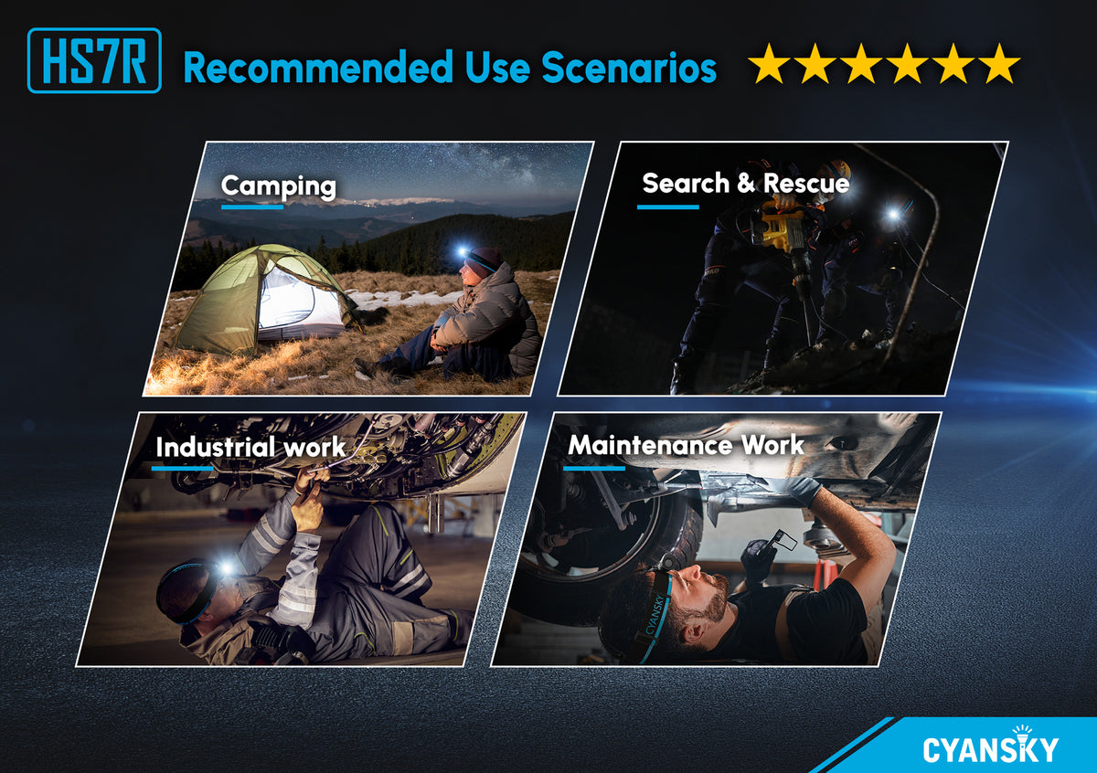The HS7R headlamp is a rechargeable high-performance headlamp with various practical functions powered by a 21700 lithium battery. The HS7R has high-quality LED lights and provides spotlight and floodlight modes. The spotlight mode can output up to 2800 lumens, and the floodlight mode can output up to 2000 lumens. With multiple modes, you can easily switch to adapt to different scenarios. The multiple color temperature options also provide a comfortable, natural, and precise light source, making it suitable for outdoor adventures and industrial operations, providing you with an excellent visual experience. The HS7R headlamp has robust performance. It comes with a detachable stainless-steel bracket and a widened headband, which can be easily worn and removed, and held comfortably in hand. The headlamp has an IP68 waterproof and dustproof rating and has passed a 2-meter drop test. Regarding safety, the HS7R headlamp integrates intelligent temperature control and light sensing adjustment to ensure a worry-free lighting experience during use. With practicality and innovative design, the HS7R multifunctional rechargeable headlamp will add brilliance to any adventure or task.