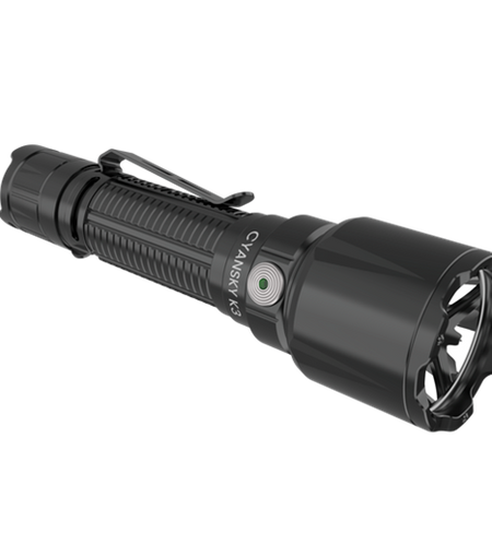 The Cyansky K3 V2.0 is a high-brightness, high-performance, ultra-long-range tactical flashlight. It is designed for military and police, law enforcement, tactical, patrol, search and rescue, etc. K3 V2.0 uses Luminus SFT-40-W LED, with a maximum brightness of 2000 lumens, a maximum distance of 700 meters, and a maximum runtime of 400 hours. It's designed with general mode with four brightness levels, ECO mode, and strobe mode. The product uses the classic tactical attack shell design, equipped with high-hardness zirconium beads, which can easily smash the glass and execute tactical missions. In addition, the optional gun mounts or remote switches can meet the needs of tactical use in different scenarios.