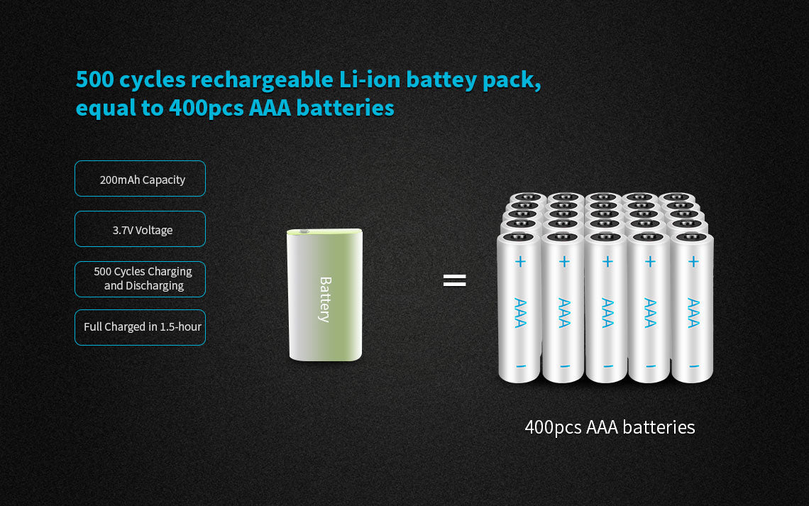 The tiny keychain light adopts a built-in 200mAh rechargeable Lithium battery. When battery low, you only need to open the protective cap on the charging port and connect the coming TYPE-C cable to your power adapter to charge, the charging indicator will display red while charging and turn to green when the light is fully charged.