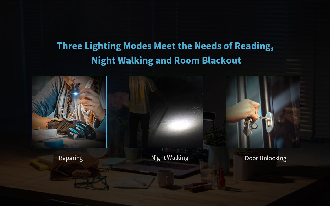 The red light can help you have a bedtime read clearly but not disturb your mate. And you don’t have to bear the eye-ache or be bothered from mosquitos. Attach the small keychain flashlight onto your backpack to give out alert that you are walking or cycling there.