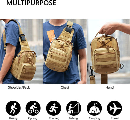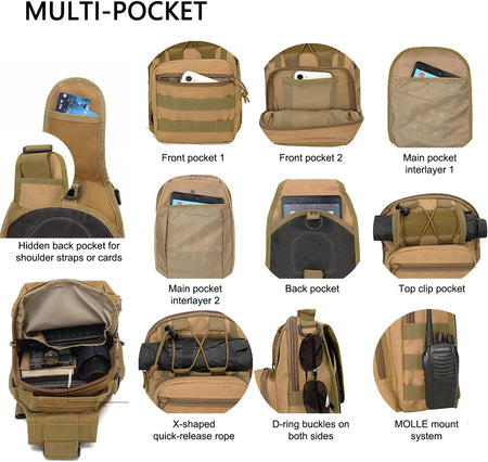 EDC Shoulder Chest Backpack Single Shoulder Strap (Tan/Khaki)