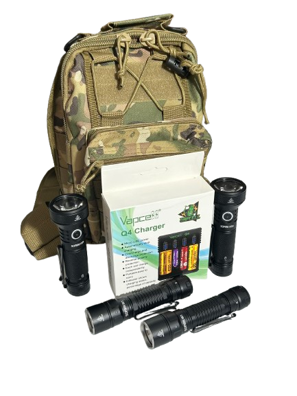 2× High-Output Sofirn IF22A LED Tactical Flashlights (2100 lumens) – Ultra-bright spotlight for high-demand scenarios. (Including 2x 21700 Vapcell 4000mAh FT Batteries)