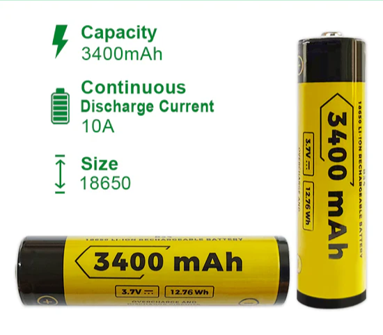 - 1x Helius Emergency Camping/Work-Light Square LED COB Lights w 2xVapcell B34 18650 3400mAh Button Top Rechargeable BT Batteries.Â