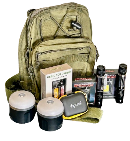 We've included different light options, so you can adjust to your lighting experience and situation to suit your needs, whether you're camping in the wilderness, hiking in the mountains, or in a power outage, our custom picks in our Ready Go Bag's will definitely keep you out of the dark. This bag is designed for a (2-3) person scenario, other bags are available for bigger parties as well.