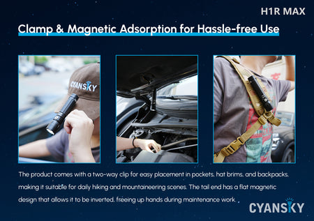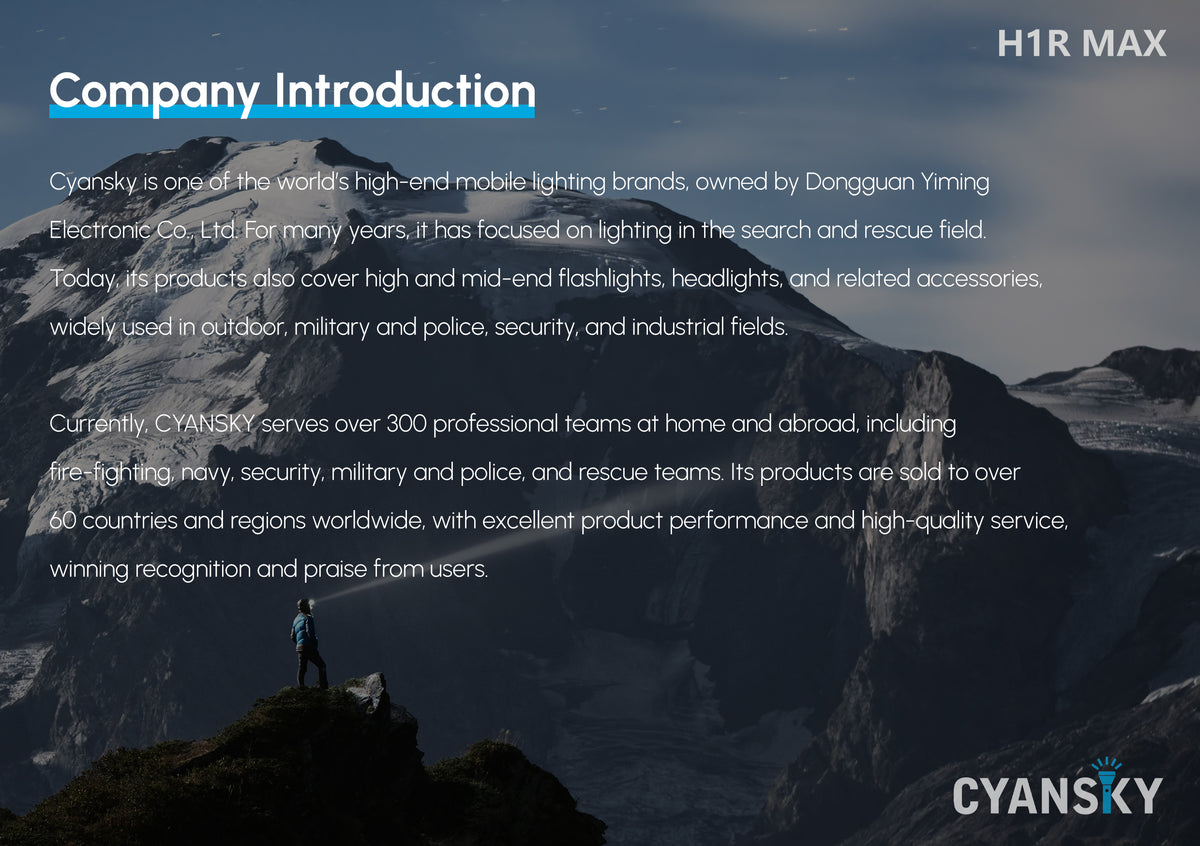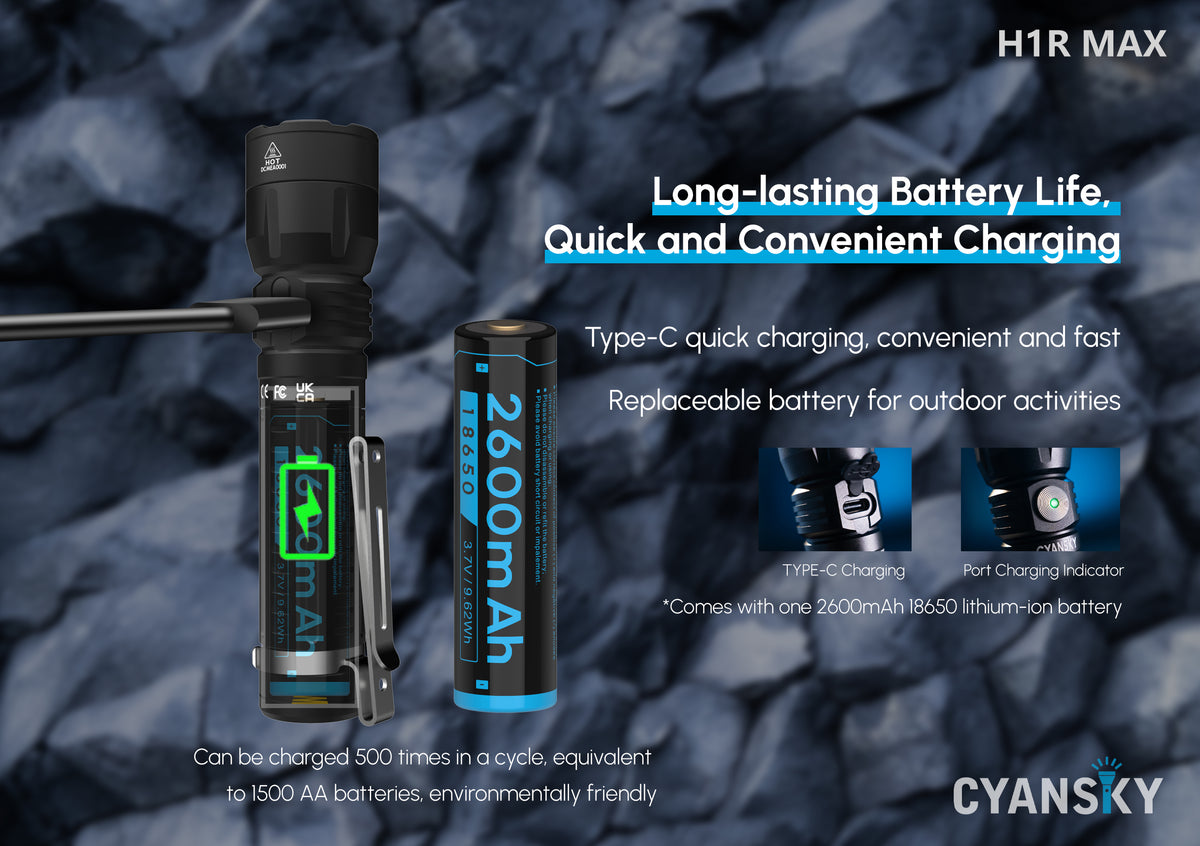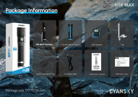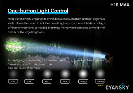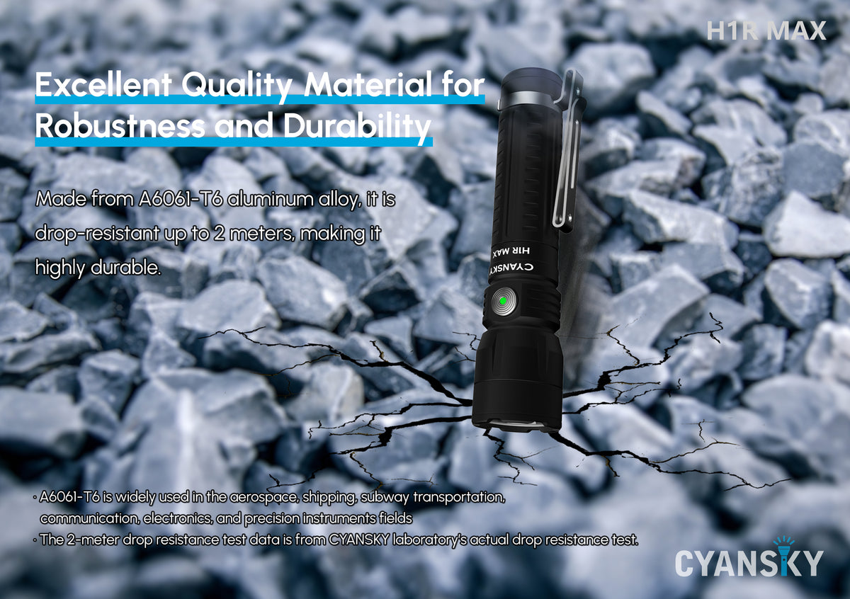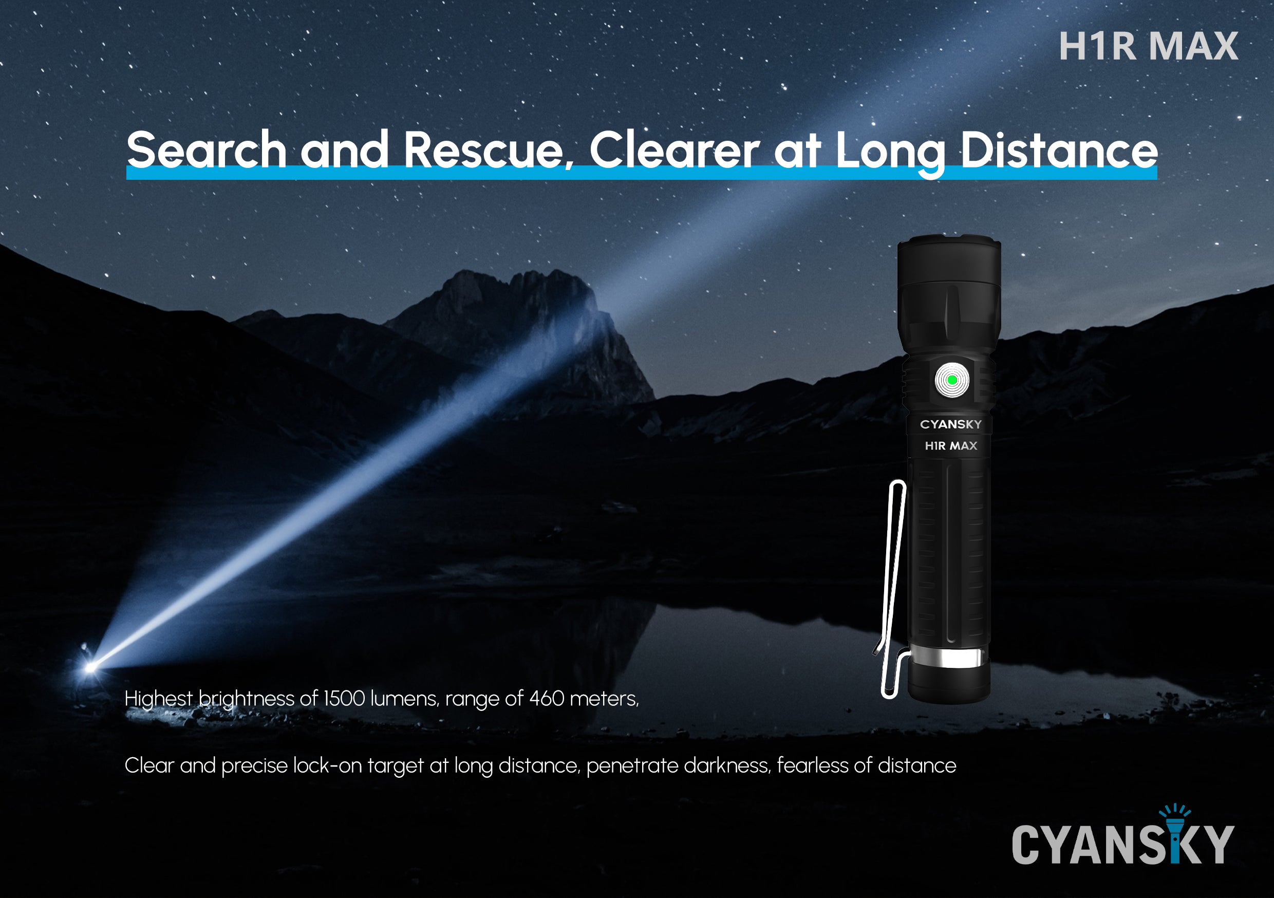 The Cyansky H1R Max is an ideal choice for search and rescue operations, outdoor adventures, and emergency preparedness, offering a reliable and versatile lighting solution in a compact form factor.
