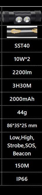 - ULTRA BRIGHT: SST40 LED's headlamp, Delivers over 2000 lumens output. Featuring 5 different modes: Low, Medium 1, Medium 2, High, Turbo.