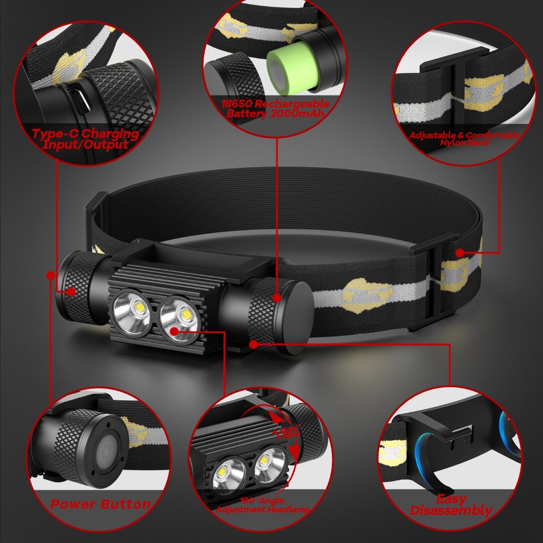- TOUGH AND DURABLE: Aircraft-grade aluminum alloy case and hard-anodized finish design make the LED headlamp durable and waterproof.