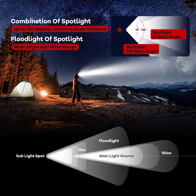 - ULTRA BRIGHT: SST40 LED's headlamp, Delivers over 2000 lumens output. Featuring 5 different modes: Low, Medium 1, Medium 2, High, Turbo.