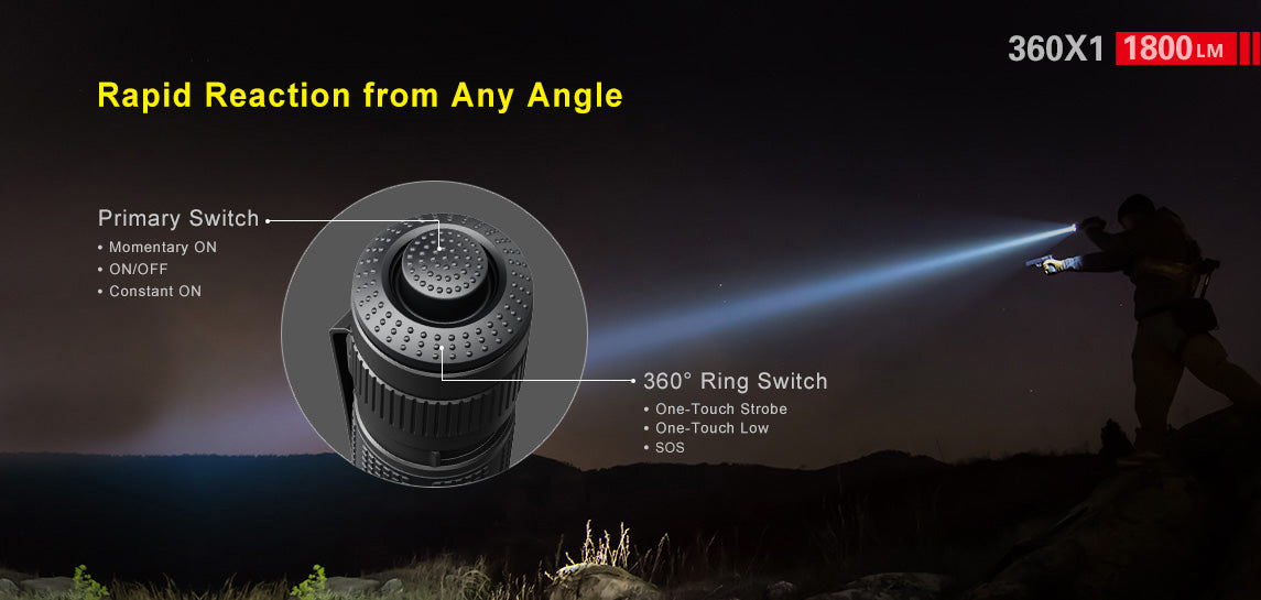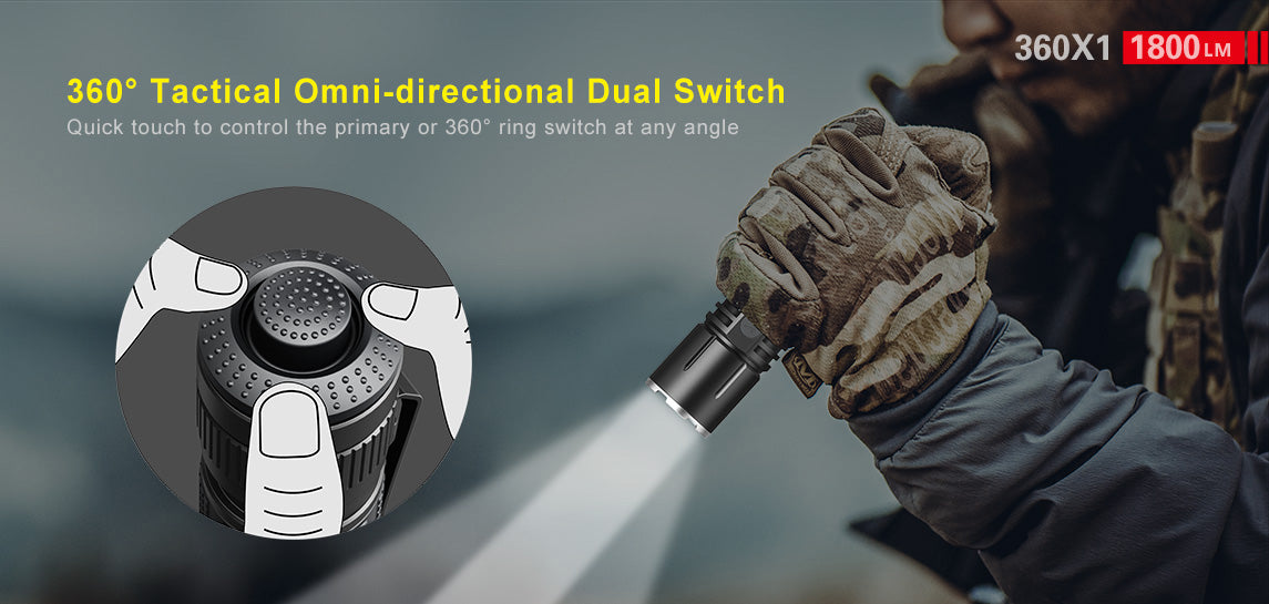 - Switch: 360° Tactical Omni-directional Dual Switch
