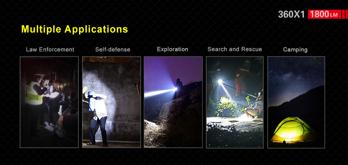 - Outdoor Setting: designed with wilderness in mind. One-Touch Low; One-Touch Turbo; Multiple Output levels; SOS function; suitable for hunting, hiking, camping, or search and rescue