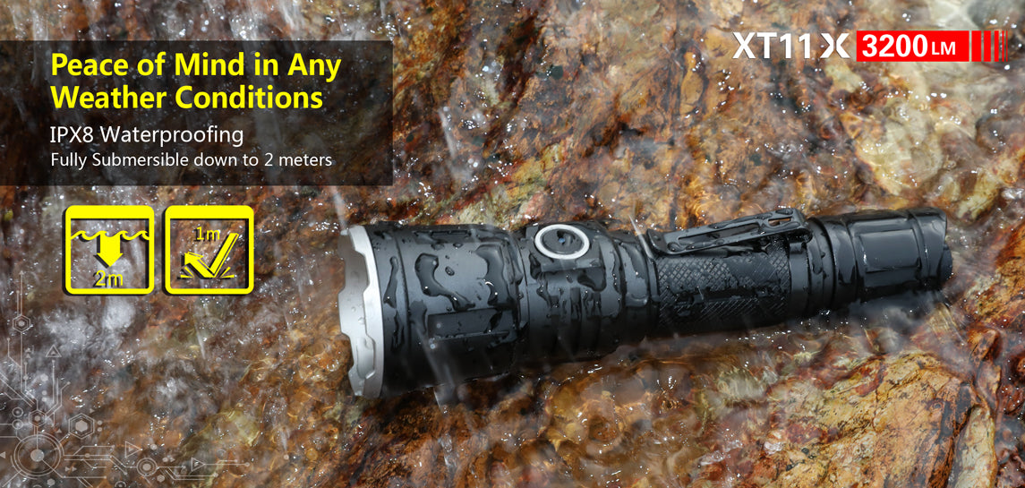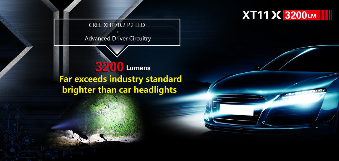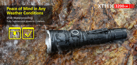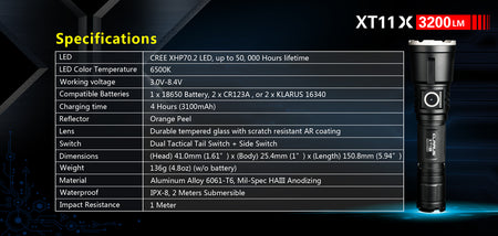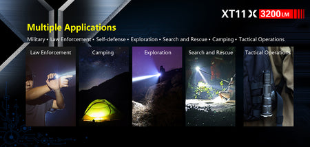 Powerful Tactical Flashlight: XT11X uses a CREE XHP70.2 P2 LED, delivers a explosive output of 3200 lumens. It features a deep orange peel texture reflector and has a maximum beam throw of 283 meters.