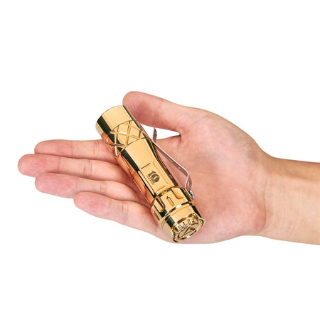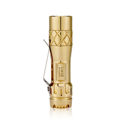 The Lumintop LM10 is a Brass flashlight designed and launched to celebrate the 10th anniversary of Lumintop. It's made of all brass which looks fantastic and feels luxurious and durable when held. The unique shape, design, and fantastic anniversary sailing icon imply a prosperous future of Lumintop. The flashlight applies the classic and easy to use Aduril UI, and it emits a 2800 lumens super bright output from three emitters. IPX8 waterproof protection, tritium slots, LM10 is more playable and it is the ideal choice for both daily use or to add to your collection.