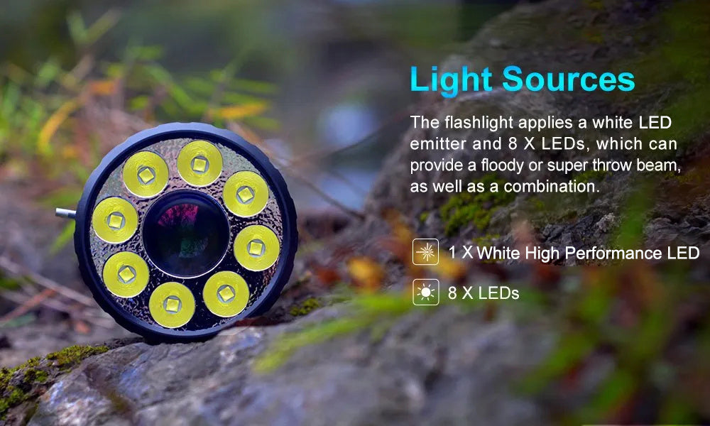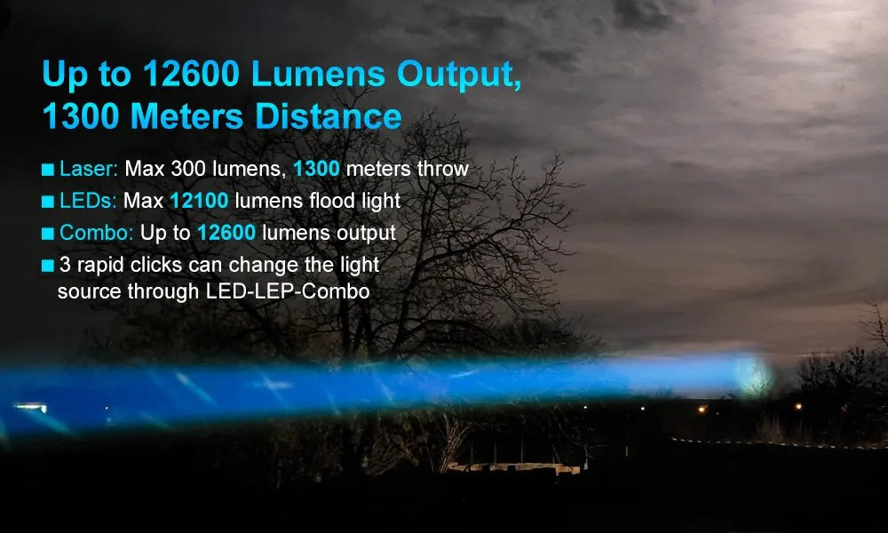 | Light Source | 1 X White Laser Emitter + 8 X LEDs | |||||