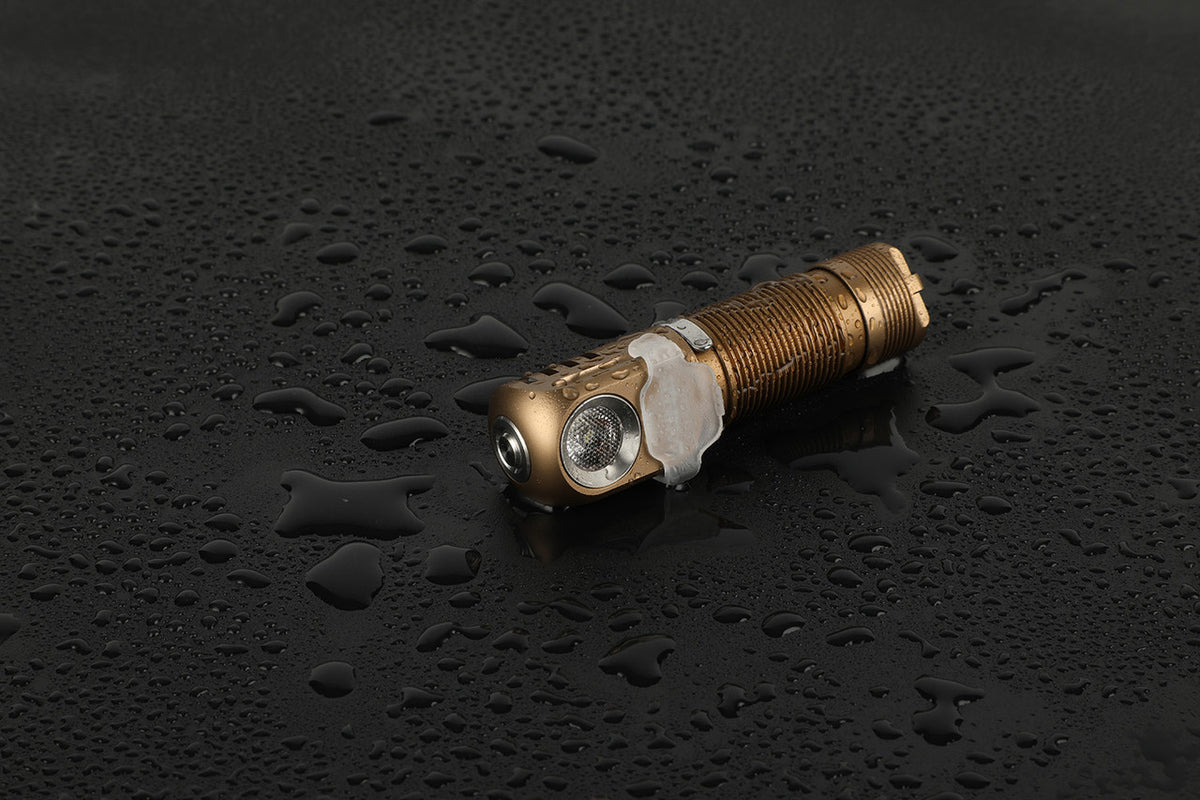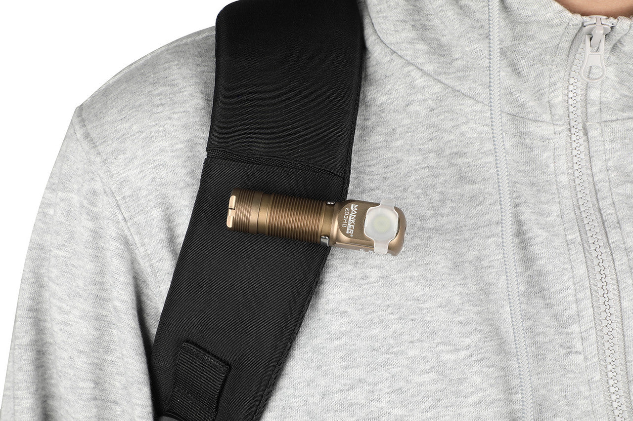 The Manker E03H II is a compact and lightweight but a powerful EDC flashlight with great run times. Uses a 14500 or a AA battery. The headlamp weighs just 2.05oz (with the headband), but has high performance using a Luminus SST20 LED. E03H II features a maximum 600 (360) Lumens output and 22 hour runtime with just one 1x 14500 or AA battery. This flashlight is a multipurpose angled flashlight in that the LED is on the side. The headband is included and optional for those times that you need it to work as a headlamp otherwise the flashlight is also great as an everyday carry pocket light with a reversible pocket clip.
