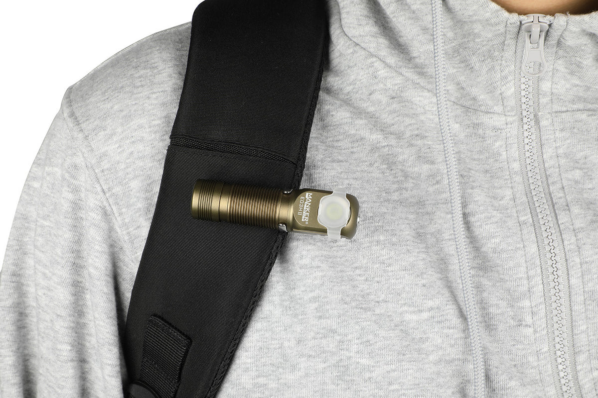 The Manker E03H II is a compact and lightweight but a powerful EDC flashlight with great run times. Uses a 14500 or a AA battery. The headlamp weighs just 2.05oz (with the headband), but has high performance using a Luminus SST20 LED. E03H II features a maximum 600 (360) Lumens output and 22 hour runtime with just one 1x 14500 or AA battery. This flashlight is a multipurpose angled flashlight in that the LED is on the side. The headband is included and optional for those times that you need it to work as a headlamp otherwise the flashlight is also great as an everyday carry pocket light with a reversible pocket clip.