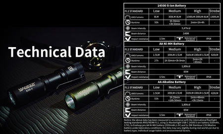 • Battery: 1x 14500 li-ion / 1x Alkaline AA / 1x Ni-MH AA