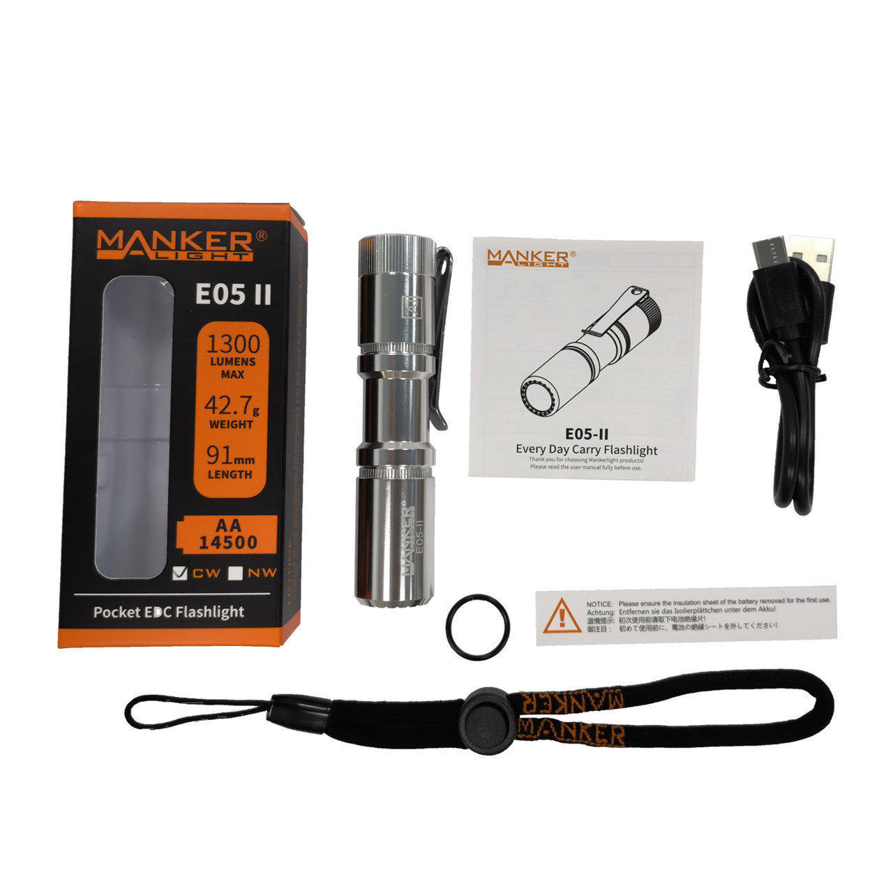 The Manker E05 II is the Most Powerful Everyday Carry Flashlight in single 14500 /AA Class.