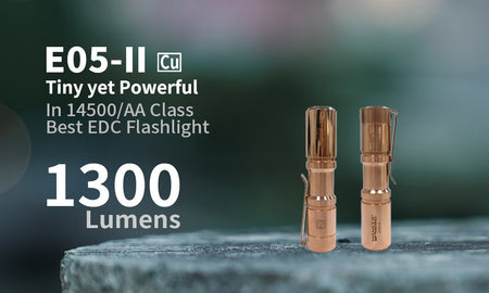 The Manker E05 II Cu is Most Powerful Every Day Carry Copper Flashlight in Single 14500 /AA Class.