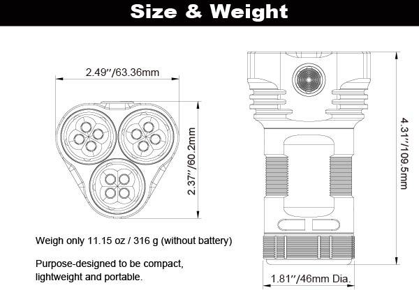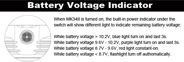 - Triangle shaped flashlight head and ultra-compact flashlight body allow the end users to operate MK34 II easy with one hand.