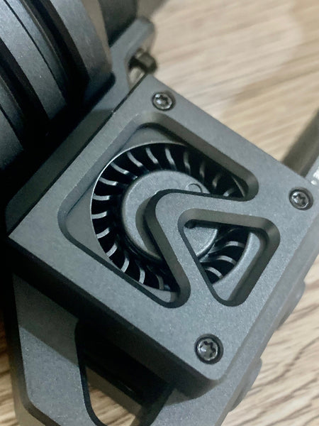 ON/OFF: In any state (except LOCK-OUT), single click the front switch on the handle to turn on 2x cooling fans. A single click after this turns the fans OFF.