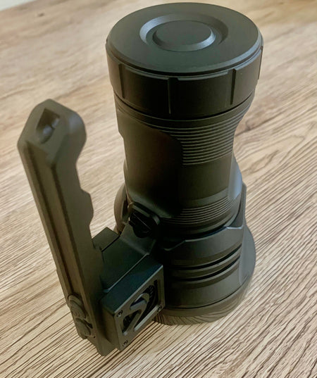 14. After assembling the handle, please put the quick release screw into the connector socket on the flashlight head and tighten it to get a better waterproof.