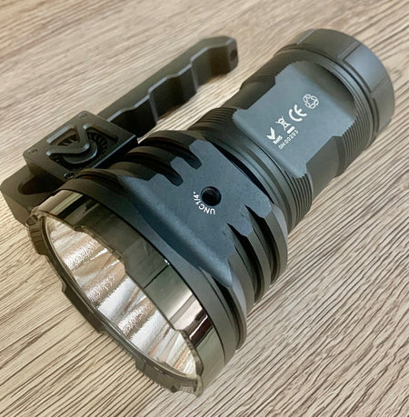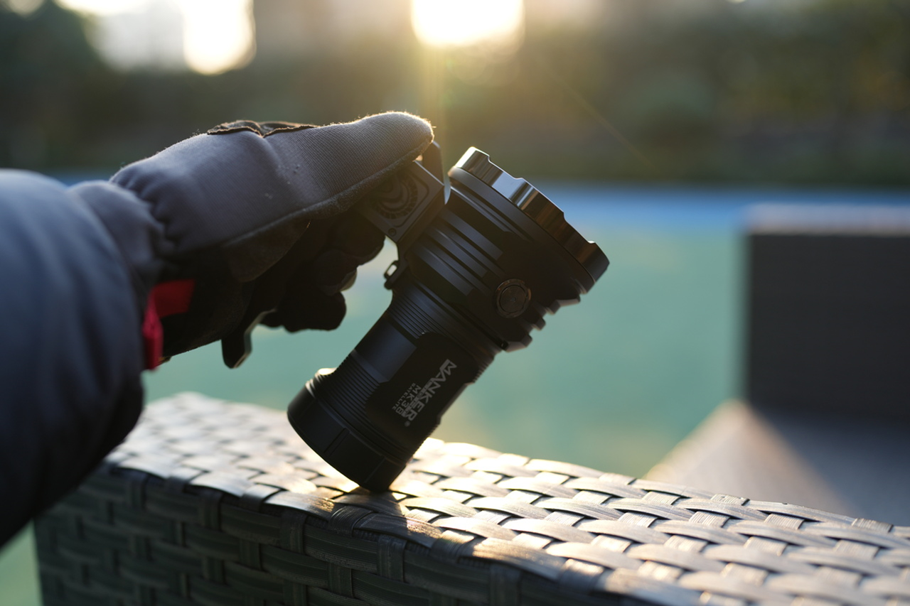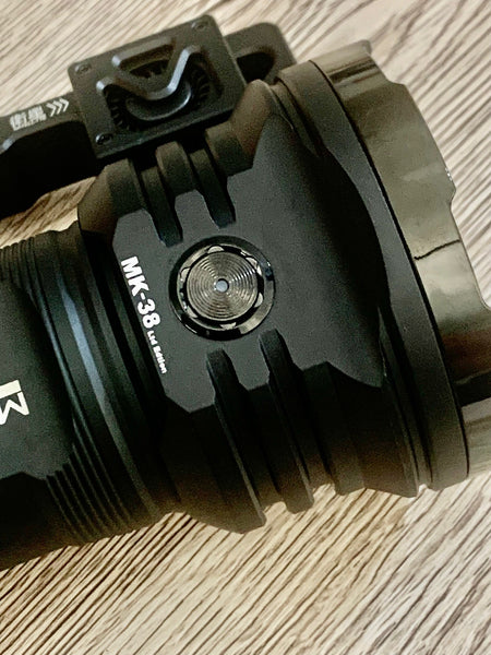 Advanced intelligent temperature regulation technology allows MK38 to dynamically adjust output performance according to its body temperature. The light will accumulate a lot of heat when you use it at high-output levels for extended periods. When the light reaches the temperature of 65°C or above, the light will automatically step down its output to reduce the temperature. at the same time we also make more premium cooling fins on flashlight head and built-in durable-row fans to blow effectively these cooling fins through the outside to protect flashlight overheat.