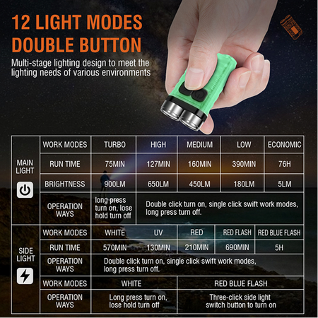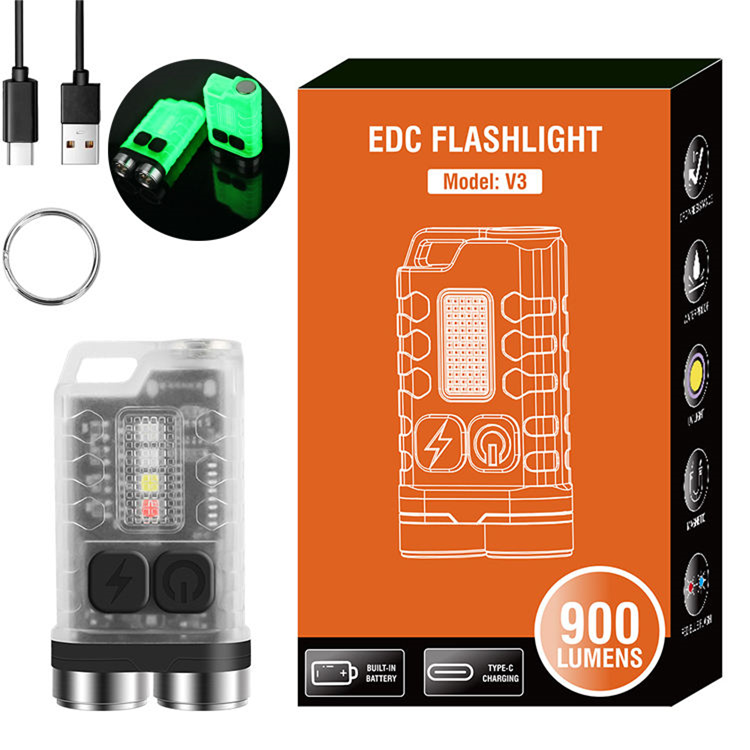 Boruit Model V3 EDC Fluorescent Multi-Functional Keychain Flashlight 900 Lumens